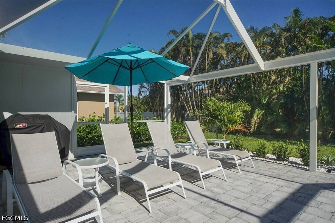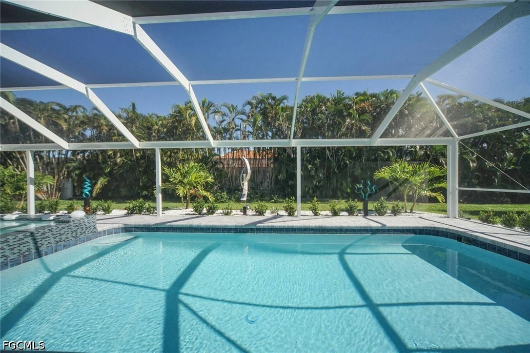 The spacious covered lanai and the great outdoor area invite you to relax. The entire pool area is completely covered with a screen. The backyard has beautiful sculptures